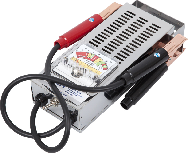 Нагрузочная вилка тестер для аккумуляторов МАСТАК 122-00001 служит для диагностики рабочего состояния разнообразных автомобильных аккумуляторных батарей на 6 и 12 В. Операция производится под нагрузкой. Устройство состоит из вольтметра, нагрузочного сопротивления, выключателя нагрузки, зажимов и проводов.