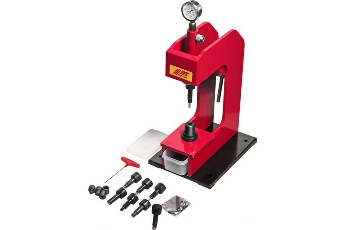 Клепальный станок для тормозных колодок (гидравлический, размер заклепок 4/6/8 мм) JTC-1517 - это компактное оборудование, часто использующееся в автомобильных мастерских для соединения и разъединения тормозных колодок, а также закрепления на них тормозной ленты. Модель обеспечивает надежное и быстрое крепление клепок без повреждения специально предназначенных для этого отверстий. Для работы агрегата необходим насос с пневмоприводом (приобретается отдельно). Габаритные размеры станка: 520х390х190 мм.