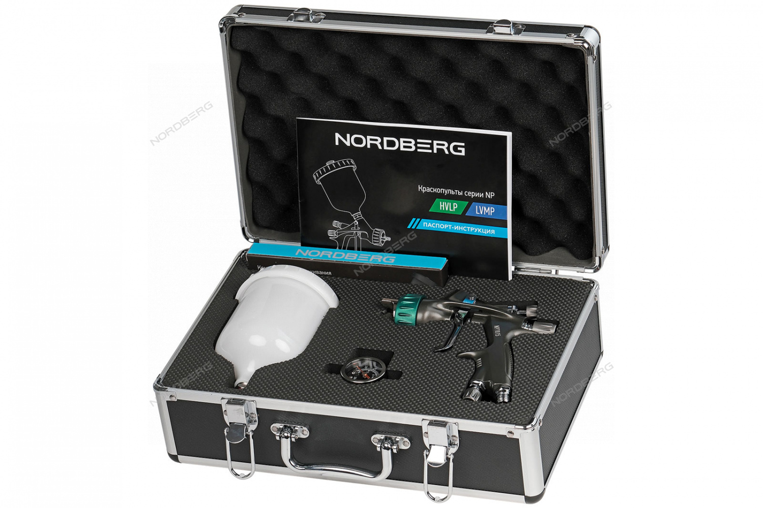 Краскопульт HVLP с верхним бачком, сопло 1,3 мм, алюминиевый кейс NORDBERG NP7015