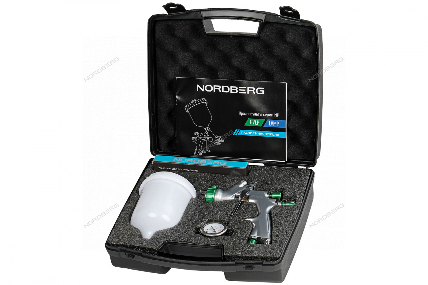 Краскопульт HVLP с верхним бачком, сопло 1,4 мм, пластиковый кейс NORDBERG NP7514