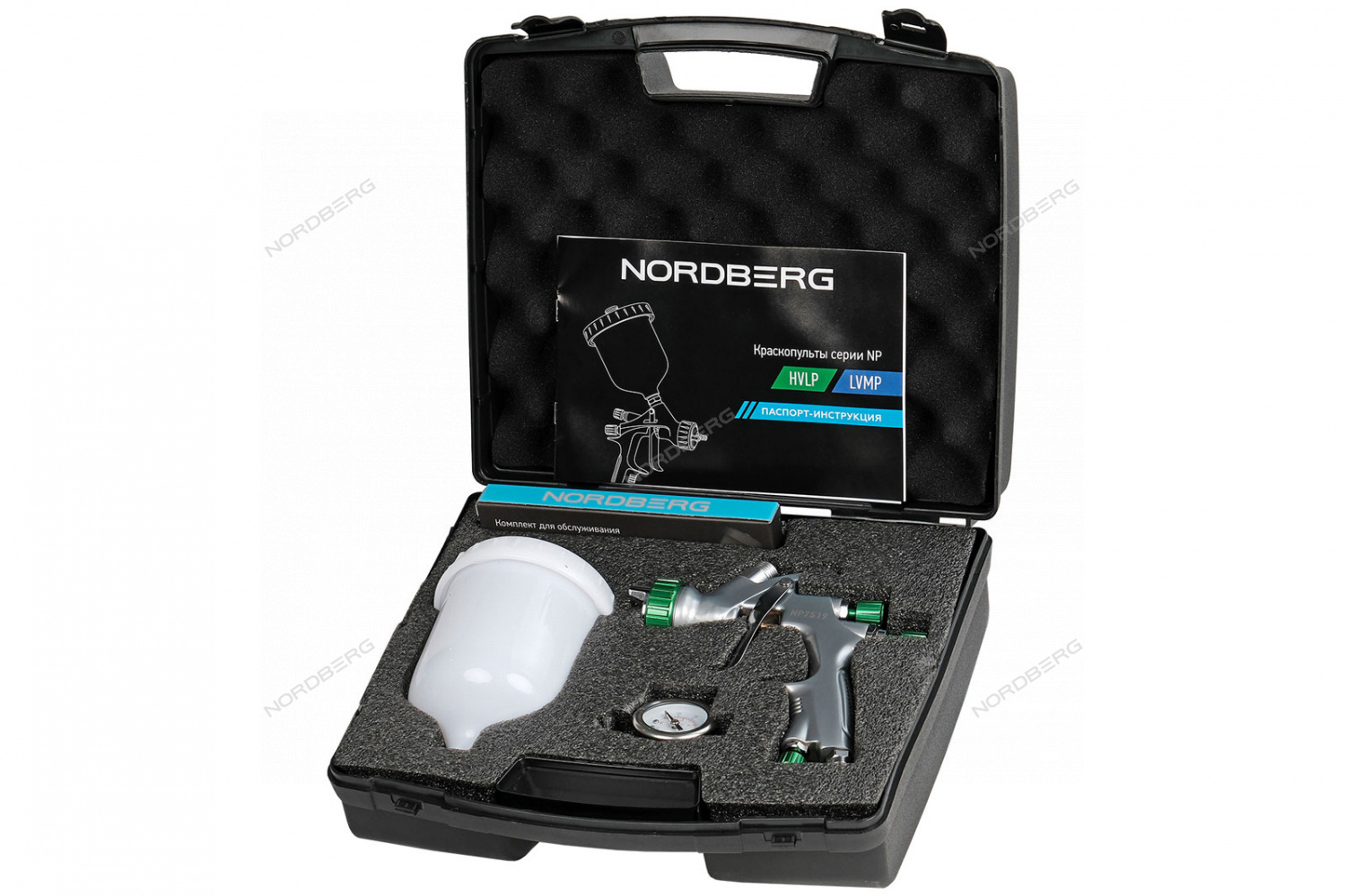 Краскопульт HVLP с верхним бачком, сопло 1,8 мм, пластиковый кейс NORDBERG NP7519