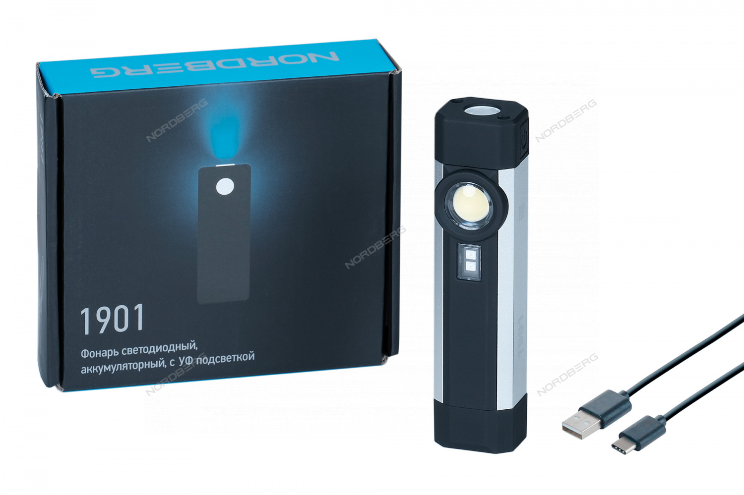 Фонарь светодиодный 1+1, с УФ подсветкой, аккумуляторный NORDBERG 1901 купить в Москве на официальном сайте дилера Nordberg