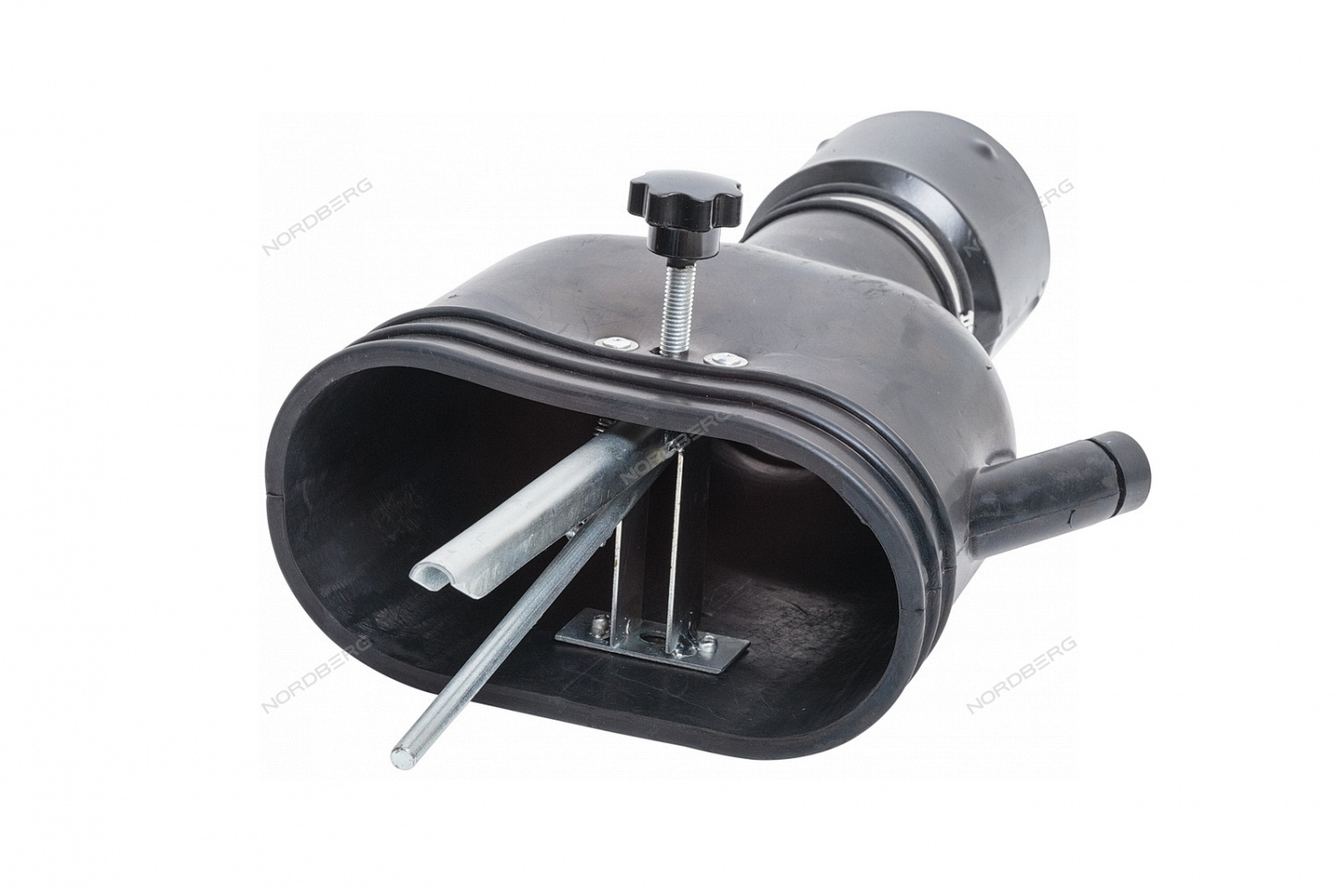 Овальная резиновая насадка на шланг с внутренним фиксатором NORDBERG AN100DP применяется в системах удаления выхлопных газов непосредственно от выхлопной трубы автомобилей, находящихся внутри закрытого помещения автосервисов или станций технического обслуживания.