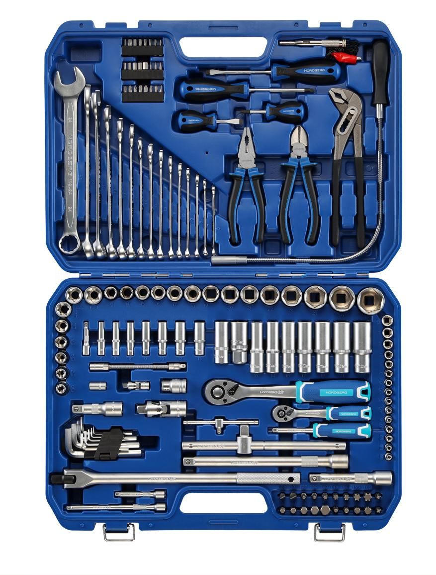 NORDBERG 2496147C — универсальный набор инструментов предназначен для выполнения работ различной сложности. Подходит для профессионального и бытового применения. Прочный кейс оснащён рукояткой для удобной транспортировки и хранения инструмента.