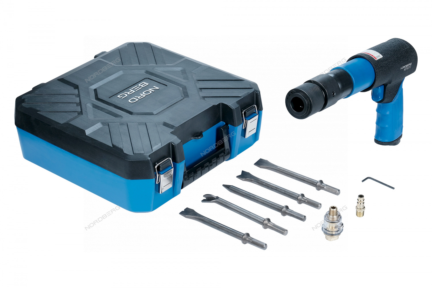 Пневмозубило 250 мм, с комплектом насадок и быстросъемным держателем в кейсе NORDBERG NP5070K