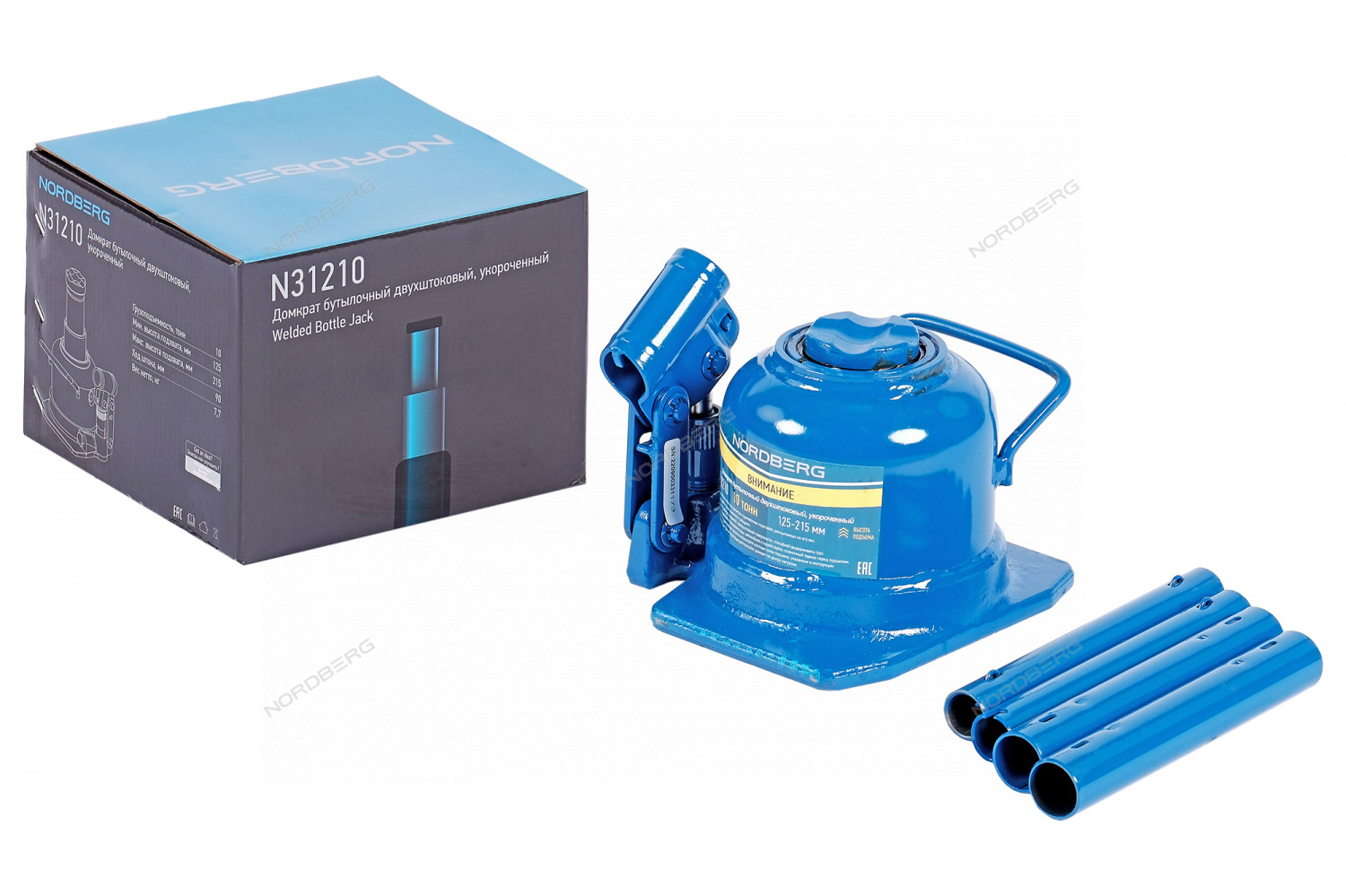 Домкрат бутылочный двухштоковый, укороченный NORDBERG N31210 – профессиональное грузоподъемное оборудование для сервисных работ в автотранспортных предприятиях, автомастерских и СТО.