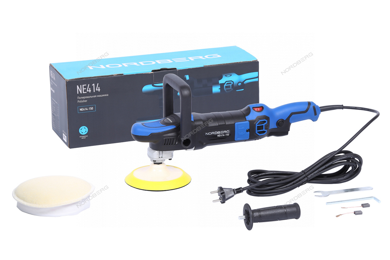Полировальная машинка NORDBERG NE414-150 – электрический инструмент для выполнения профессиональных работ в автосервисах, студиях детейлинга и других предприятиях, занимающихся покраской.