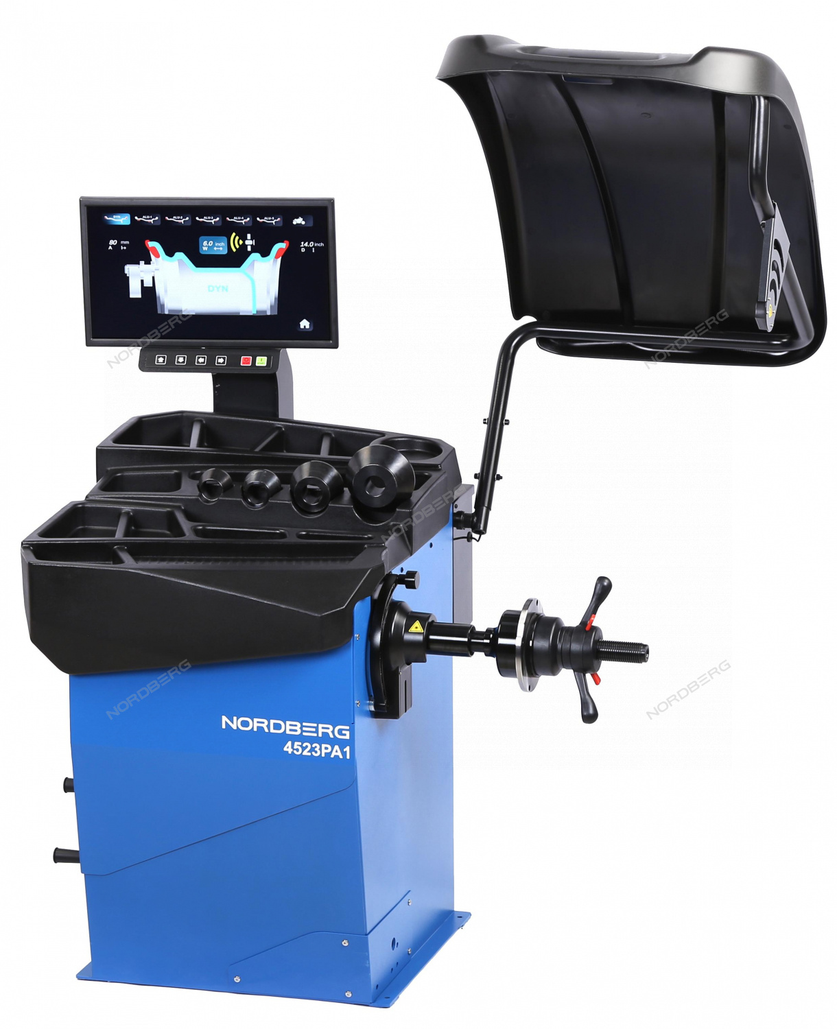 Балансировочный автоматический станок с дисплеем NORDBERG 4523PA1(B) – специализированное оборудование для балансировки колес легкового, грузового транспорта и микроавтобусов.