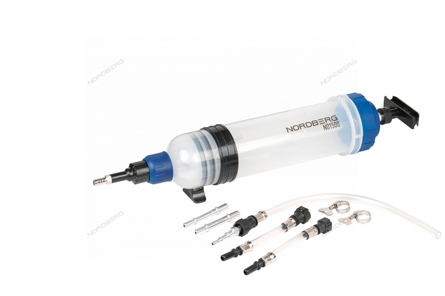 Шприц для заливки масла пластиковый с комплектом насадок, 1500 мл NORDBERG NO1500