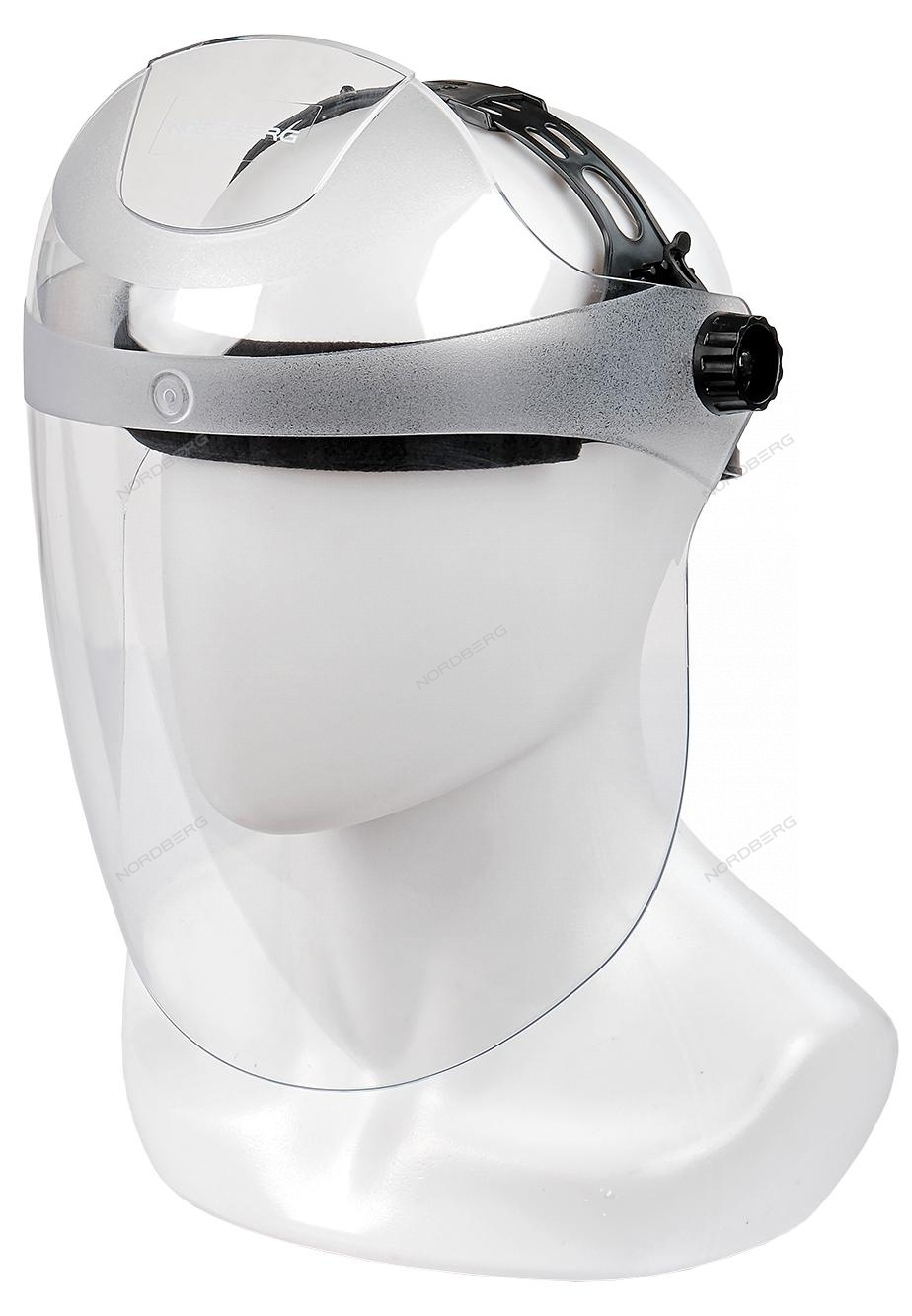 Цельнолитой щиток с большим (310*210 мм.) экраном с панорамным обзором. Профессиональное регулируемое оголовье с храповым механизмом. Поликарбонат, толщина 2 мм.