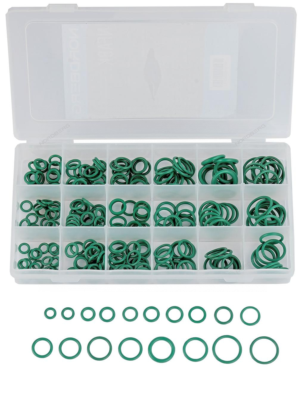 Набор уплотнительных колец NORDBERG NFA8K в пластиковом кейсе с ячейками используется для герметизации узлов системы кондиционирования автомобиля, а также для подвижных и неподвижных гидравлических, пневматических, топливных и смазочных узлов автотранспорта.